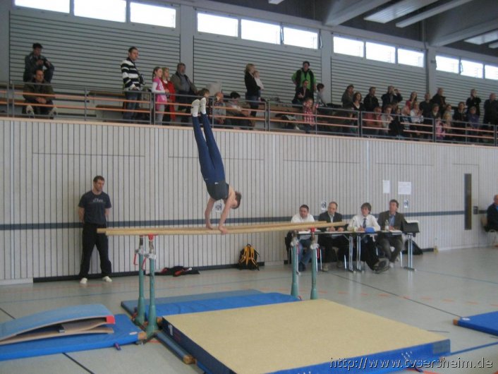 Timo Kögele turnte einen Fünfkampf. Insgesamt waren 12 Teilnehmer in seiner Alterklasse am Start. Am Ende belegte er einen hervorragenden 5. Platz und verpasste die Qualifikation zum Landesfinale nur um einen Platz.Er turnte an allen Geräten seine Übungen sauber durch, sodass die Gegner nur durch höherwertige Übungen punkten konnten.