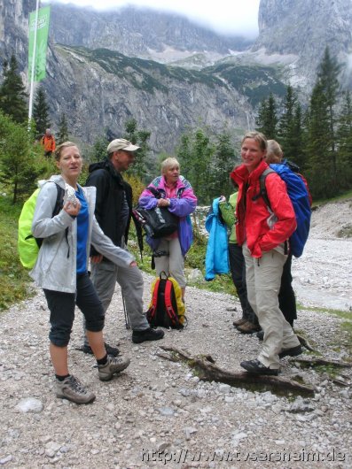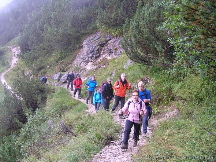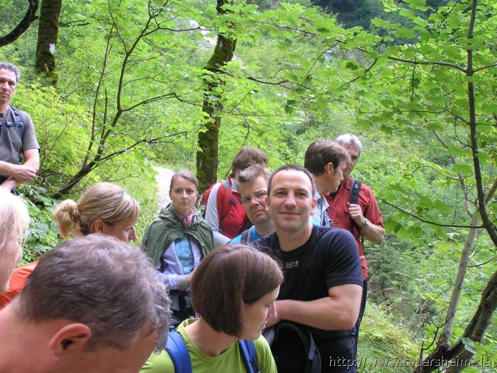der Wettergott hatte kein einsehen und es begann bereits zu regnen - was der Stimmung jedoch keinen Abbruch tat. Mit dem Bus ging es in Richtung Hammersbach. Hier verabschiedeten sich die ersten und starteten zur Bergtour durch die Höllentalklamm mit ihren Wanderführern Rainer Erhard, Franziska Arnold, Gerd Kurfiß und Michael Kammerer.