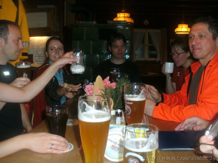 Ein gemeinsames Essen zum Abschluss des Wanderwochenendes fand auf der sogenannten „Windbeutelam“, dem Berggasthof „Almhütte“ statt, bevor es dann wieder auf die Heimfahrt ging, wo die Wanderfreunde kurz nach 20 Uhr ankamen.