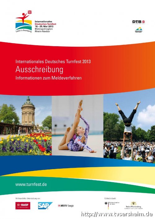 18. - 25. Mai 2013 Metropolregion Rhein-Neckar Komplette Ausschreibung Ein Auszug aus der Ausschreibung des Turnfestes, mit den, für den TV Sersheim, wichtigsten Themen: