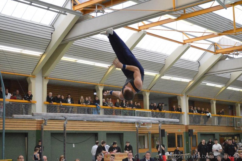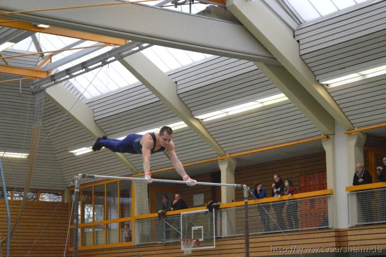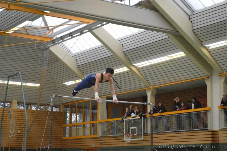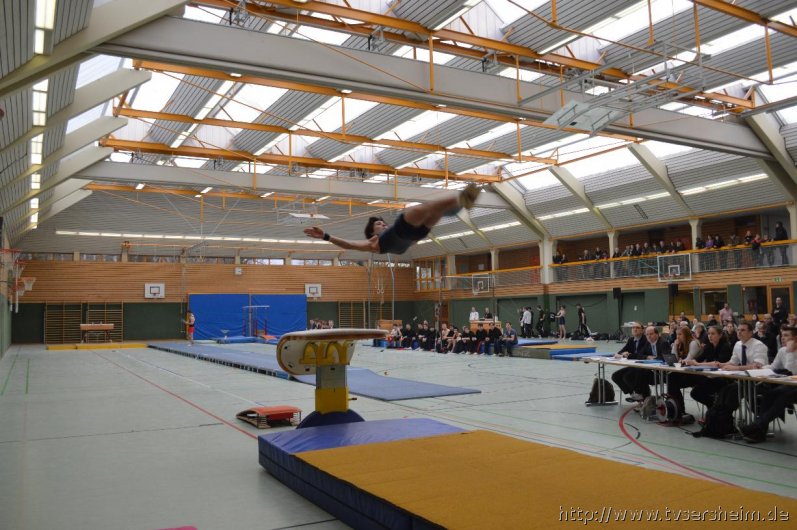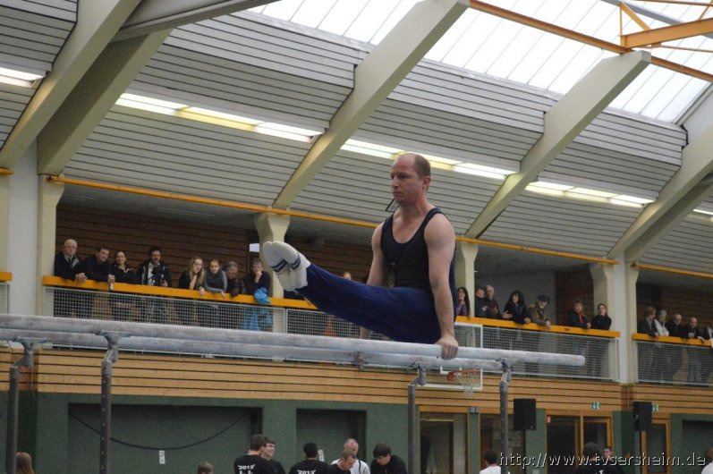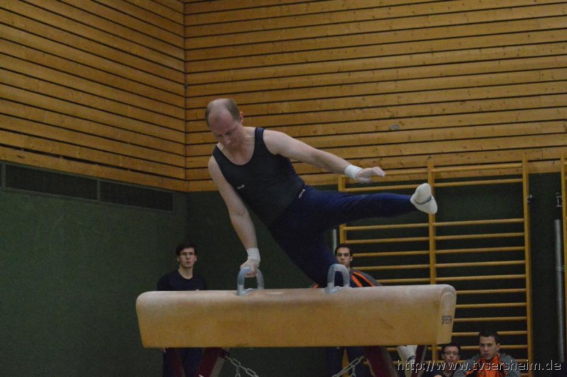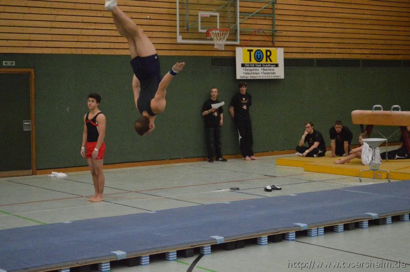 Da Zeitgleich die Landeligamannschaft des VGL Sindelfingen an den Start ging, startete der Wettkampf für die TG am Pferdsprung, diesen konnten die TG-Springer mit sauberen Überschlägen Knapp mit 0,8 Punkten Vorsprung für sich entscheiden. Auch der Barren ging mit 0,85 Punkten an die TG, mit einer fast fehlerlosen Übung erreichte Ronny Lade hier die Höchstwertung des Wettkampfes mit 12,15 Punkten.