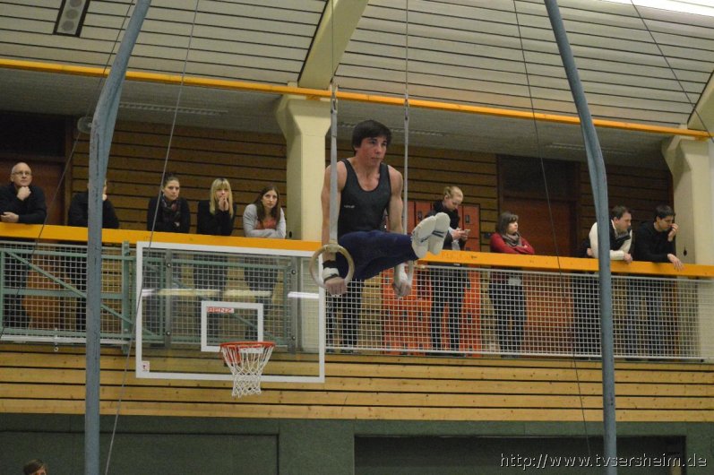 Am Reck erwischte der VFL Sindelfingen einen rabenschwarzen Tag gleich mehrere Turner mussten das Gerät verlassen, die TG’ler präsentierten sich hier in Bestform. Liganeuling Jonas Klein überzeugte die Kampfrichter mit einer einfachen, aber sauberen Übung und trug mit seinen 9,2 Punkten dazu bei dass das die TG nach dem Reck mit 8,85 Punkten führten. Am Boden zeigten die TG´ler leichte Schwächen, konnten aber, dank des Starken Daniel Nowak auch dieses Gerät mit 0,6 Punkten für sich entscheiden. Wohl aufgrund der ungewöhnlichen Situation so deutlich in Führung zu liegen zeigten die TG´ler an Ihrem letzt jährigen Paradegerät dem Seitpferd deutliche Schwächen und mussten hier 2,4 Punkte dem Gegner überlassen. So kam vor dem abschließenden Ringe turnen noch mal Spannung auf. Trotz der fehlenden Ringe-Cracks Michael Grösch und Sebastian Riegel ließ sich die Mannschaft um Betreuer Fred Bulling und Ralf Gänzle die Butter nicht vom Brot nehmen und verloren dieses Gerät nur knapp mit 0,3 Punkten.