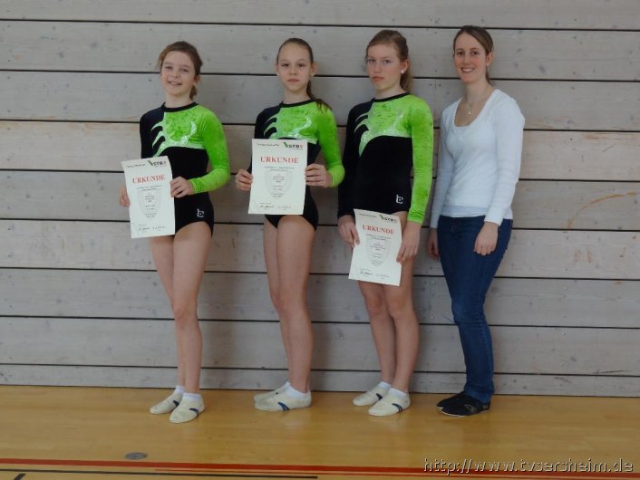 Am 09. März 2013 fand in Ludwigsburg Hoheneck die Gaueinzelmeisterschaft im Gerätturnen weiblich statt. Für den TV Sersheim starteten Nora Dierolf beim Wettkampf der 11/12 jährigen, Wiebke Neibig 12/13 Jahre und Lena Kögele im Wettkampf ab 13 Jahre. Alle konnten an den vier Geräten Sprung, Barren, Balken und Boden ihre Pflichtübungen sauber turnen und präsentierten einen guten Wettkampf. Trotz teilweise deutlich niedrigerer gewählter P-Stufen konnten so gute Punkte erreicht werden,