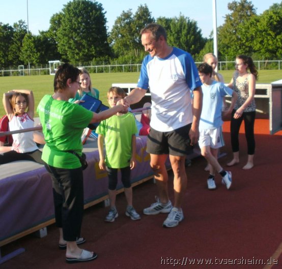 Am Mittwoch, 05. Juni 2013 gab es während dem Leichtathletik Training für Übungsleiter Heiko Merita ein kleines Präsent von Vorstand Karin Geske und Glückwünsche anlässlich seines 50. Geburtstages.