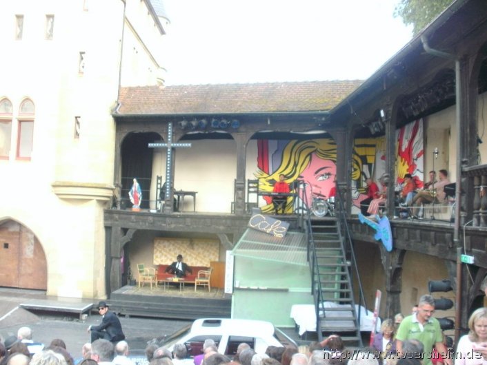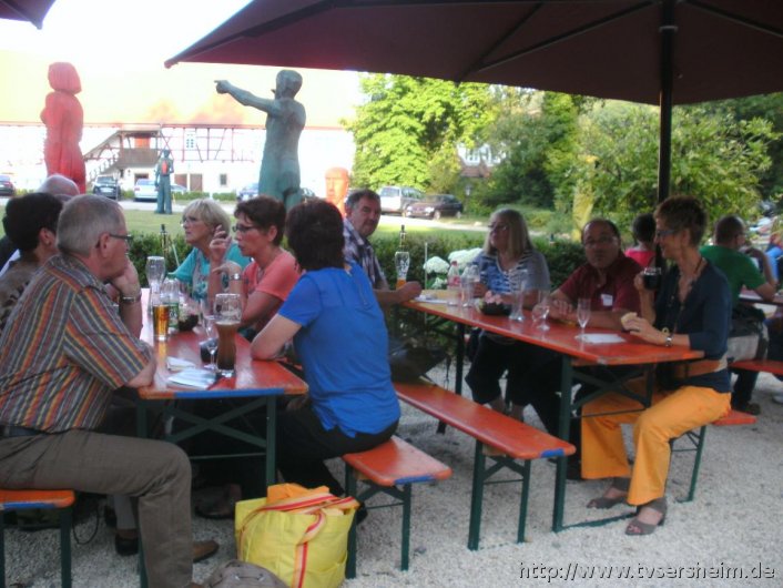 Leider hatten sich nicht so viele Interessierte gemeldet, so dass man sich entschloss mit Privat Pkws zu fahren. Kurz nach 18 Uhr traf man sich im Biergarten vorm Theater um sich einzustimmen auf das Stück.