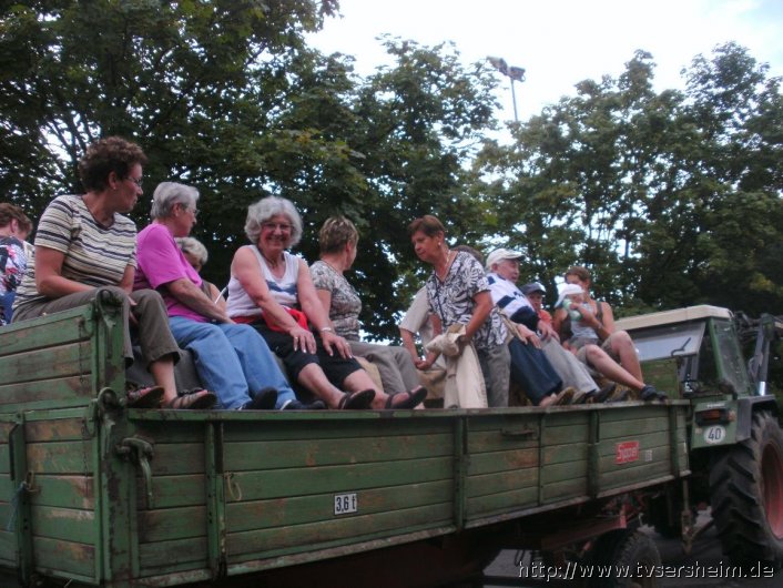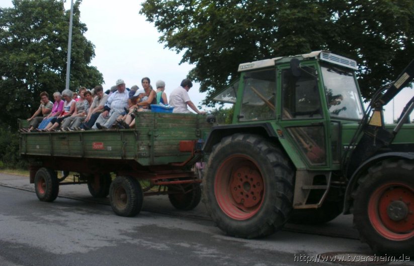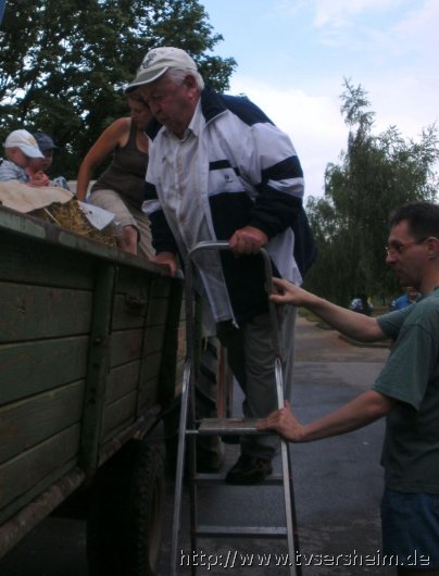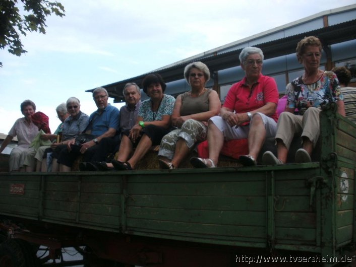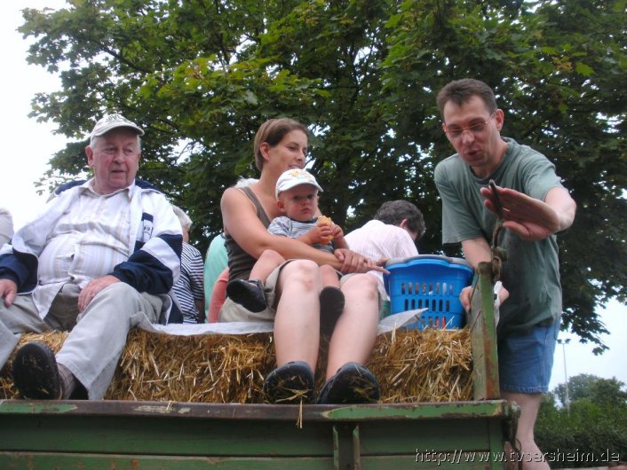 Nachdem alle auf den Strohballen Platz genommen hatten begrüßte Fahrer Martin Häcker Herzlich und schon konnte die Fahrt los gehen.