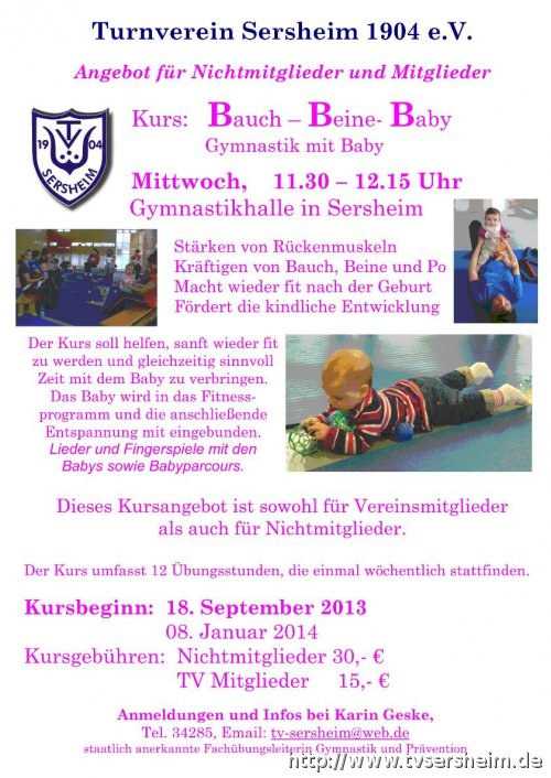 am 18. September startet ein neuer Kurs Bauch-Beine-Baby.