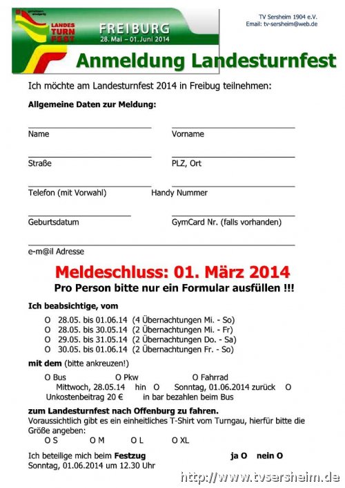 Landesturnfest 2014 in Freiburg - Anmeldung